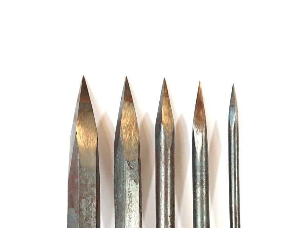 Forged stonemasonic spikes, hardened on soft sandstone, limestone and opuce.