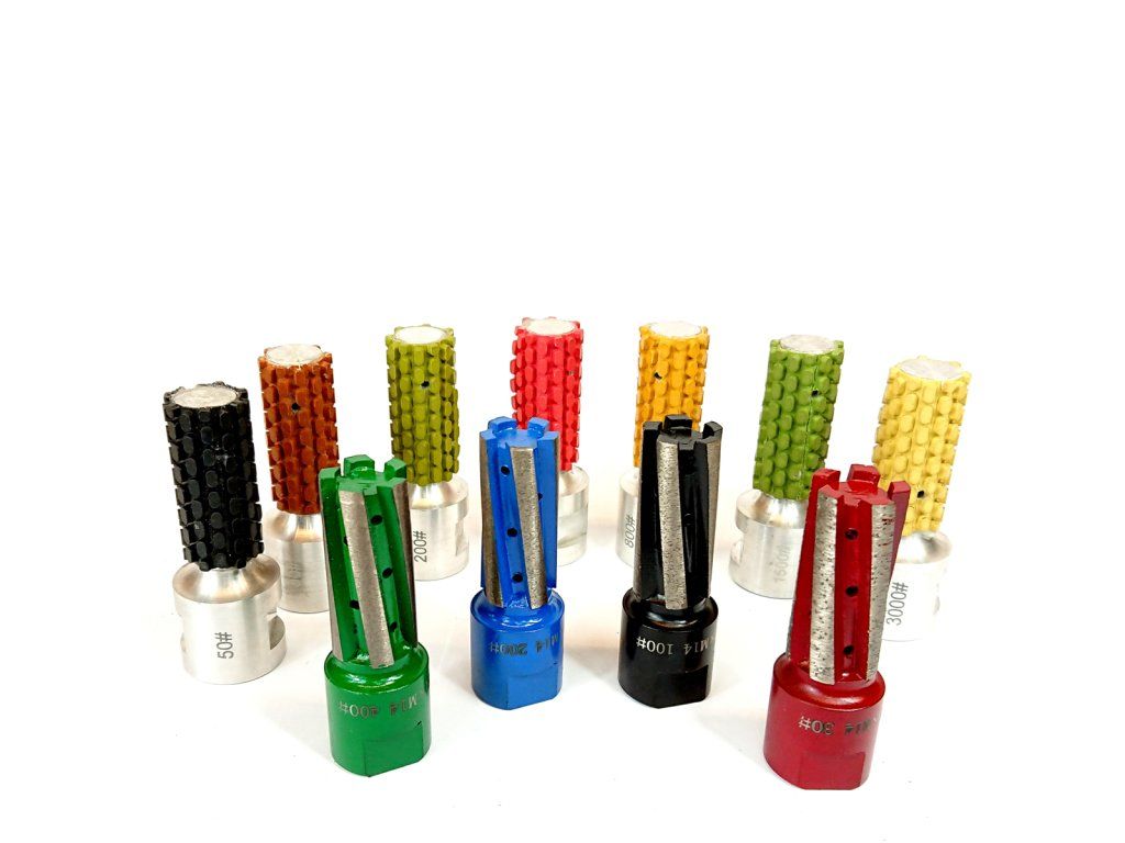 Polishing cylinders for hand sanders and CNC machines. Suitable for all kinds of natural and artificial stone. Designed for wet work.