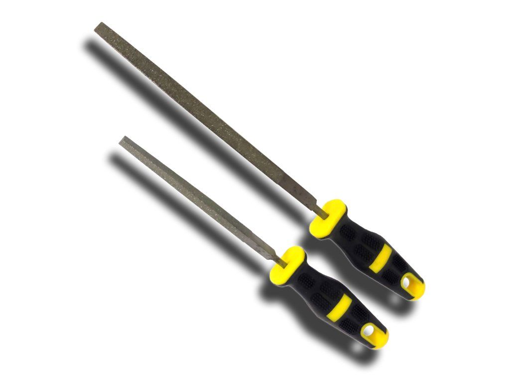 Three-sided diamond file, with a working diamond layer on the entire surface of the working part.