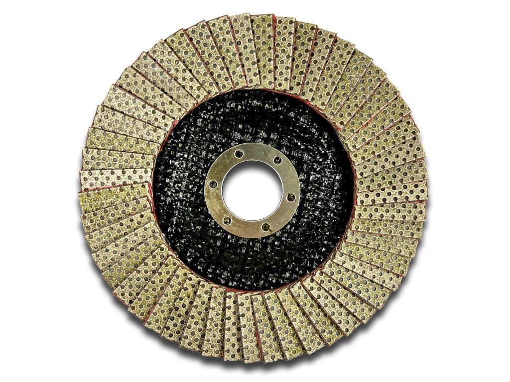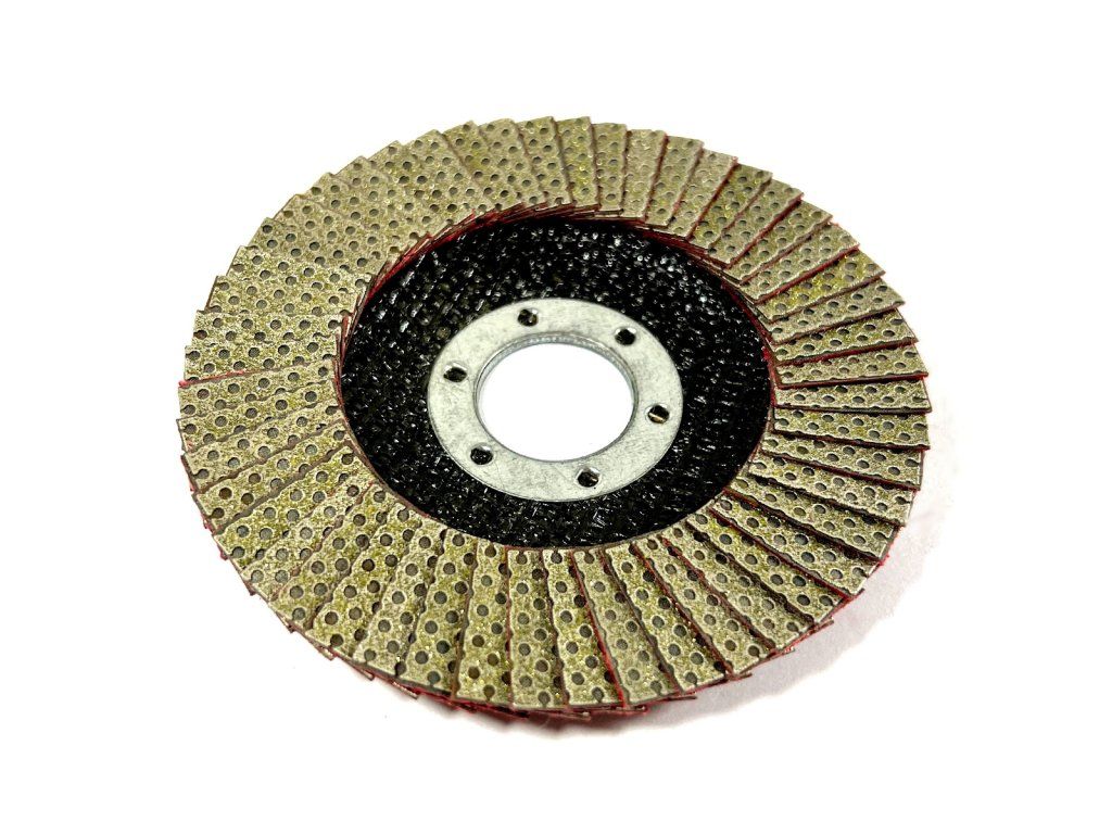 Diamond flap disc suitable for processing cut edges on tiles made of gres, ceramics or natural and artificial stone.